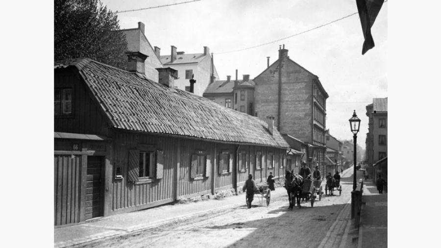 Vårt hus är ett av de första i kvarteret. Bilden du ser här ovan är från 1900 - vårt hus står ganska ensamt bland röda små trähus. :)